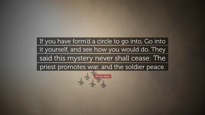 Mercy, pity, and peace are, as a matter of fact, created by human division; they depend on those situations where love is hemmed in by fear or greed. Peace appears not as a gift but as simply what happens what conflict is exhausted; it does not actually transform the heart but makes room for new dangers, especially the selfish cruelty that generates ‘humility’ – a humility that is obviously meant to be seen as a form of that poisonous concealment referred to in the earlier ‘Cruelty has a human heart’ text. And the entire process is wrapped up in terms of the characteristic religious appeal to mystery, which, in the first draft, is seen as the mechanism by which learn to ignore the contradiction of priests promoting conflict and warriors promoting peace.
