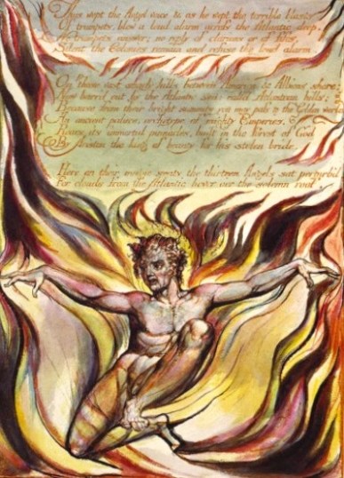 This is the image of God conceived not as a set of benign properties or activities – ‘the human form divine’ as the idealised possessor of mercy, pity, and peace – but as imaginative energy itself; which is as we might expect from ‘The Voice of the Devil’ in The Marriage of Heaven and Hell: ‘Energy is the only life and is from the body, and Reason is the bound or outward circumference of Energy’.