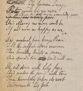 So far, the balance is between self-evidently good things (mercy, pity, peace) and evil ones. But Blake does not leave it there. The 1791-2 notebook shows a more complex level of response: