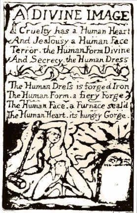 Blake might have been surprised to learn that these verses, ‘The Divine Image’, from Songs of Innocence, are sometimes printed – and sung – as a hymn. On their own, they are indeed a touchingly direct statement of a certain kind of Christian humanism, apparently optimistic and universalist – a suitable text for the enlightened, perhaps rather Tolystoyan, Christian who looks to Blake as part of his or her canon.