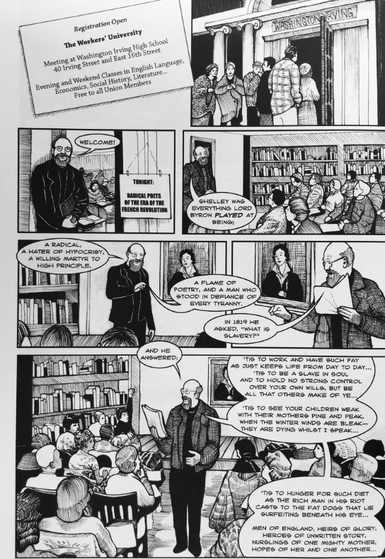 Michael Demson, in his amazing graphic novel Masks of Anarchy, traces the influence of Shelley’s great poem to the founding of one of the greatest labour unions in the history of America, the International Ladies Garment Workers Union.