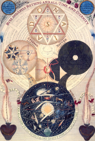 While Boehme’s visionary scheme—the emergence of the divine from the unfathomable Abyss, the activities of the seven properties and three principles, and so on—is too complex and interwoven to discuss in detail here, it can be noted that in this scheme he gives the creative spirit individual, personal form. His visionary system is not a set of ideas, a logical construct; nor is it a simple or direct description of the movements of divinity; nor is it a statement of what divinity is or is not—rather, it is an imaginative medium for approaching the divine. In this sense it can be argued that in his work Boehme created his own individual art form. As he wrote, ‘A true Christian is a continual making word in God’s voice’. His vision is dynamic and imaginative, and in keeping with his view that reality is not fixed, finished, and unchanging, and thus capable of being fully and finally understood and explained. Rather, it is ongoing, evolving, ever-expanding. As he wrote of the nature of spiritual enquiry in the Aurora: