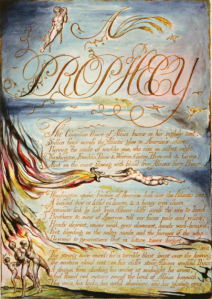 The following is a written transcript of the visual commentary above on Blake’s great poem America a Prophecy. The text is offered merely for the convenience of those who are interested in the video, or who would like to cite quotations directly from Rabinowitz’s illuminating take on this remarkable work, which as the video notes is one of “the most visually appealing of all his illuminated books”.
