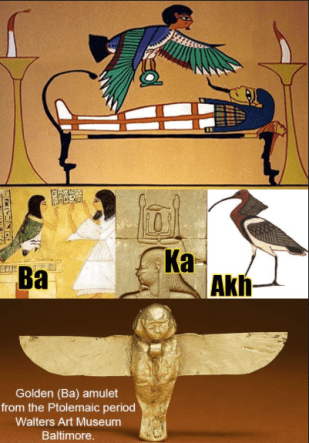 Ancient Egyptian texts suggest that the ba needed to see the body inert in order to know itself as independent of it: the ba actually defined itself over against the body. And then it knew that whereas the body is subject to death and decay, the ba itself is not, but can exist separately from the body.
