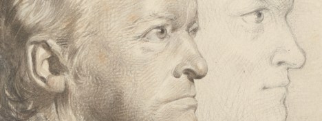 The figures are compositionally arranged so as to mirror each other. William and Robert are shown apparently falling backwards, their bodies thrown so far back that their inverted faces are vertical.