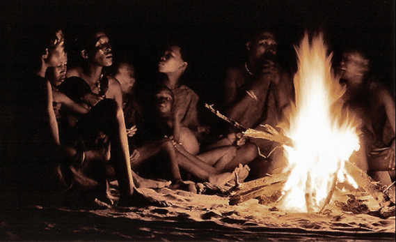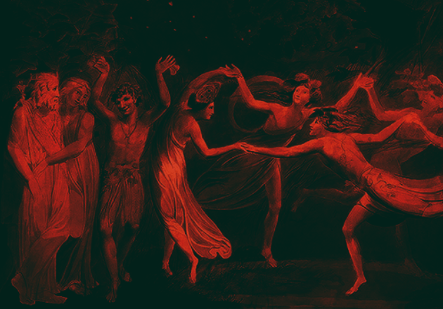 Trance dance: San ritual fire dance (above); William Blake, Titania and Puck with Fairies Dancing (below)