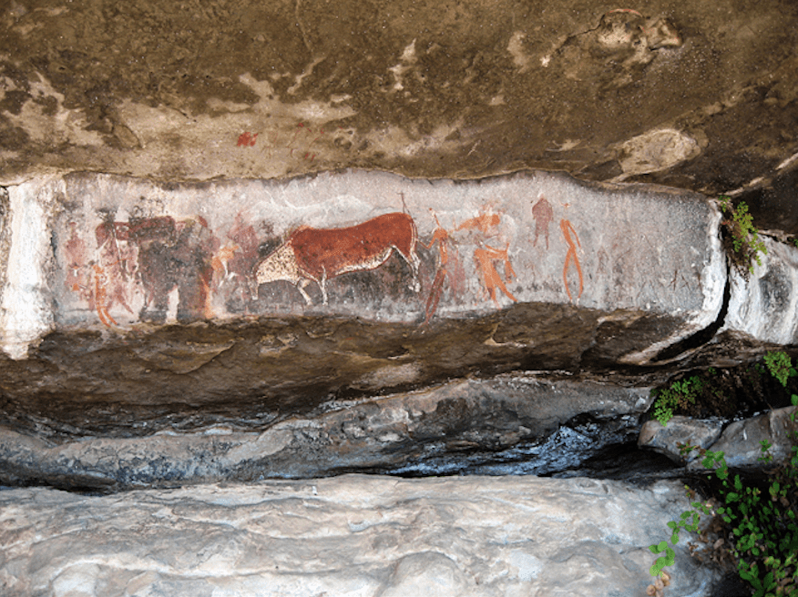 Living Creatures: The ‘Rosetta Stone’ of San rock art is located at the Game Pass Shelter in the Drakensberg Mountains. It was here that Professor David Lewis-Williams, the South African scholar and professor of archaeology, first uncovered a vital key to understanding the symbolism of the San Bushman rock art paintings: ‘The man is a shaman going into trance. He is about to leave this world for the spirit world, and he is taking on the power of the eland, the most powerful animal of all.’