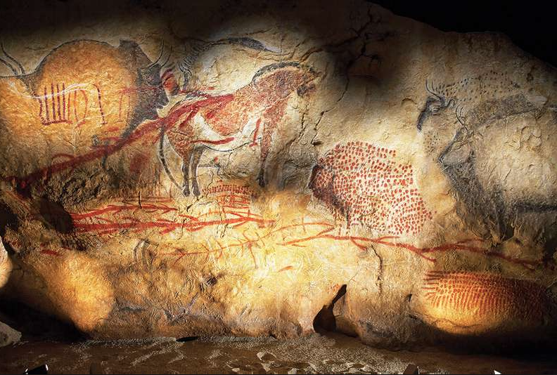 Geometric forms in cave art paintings at Marsoulas in France, from c. 20,000 years ago