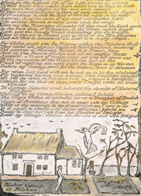 the Blakes lived in a thatched cottage a few hundred yards from Felpham’s shoreline, witnessing the larks ‘springing from the waving Corn-field’