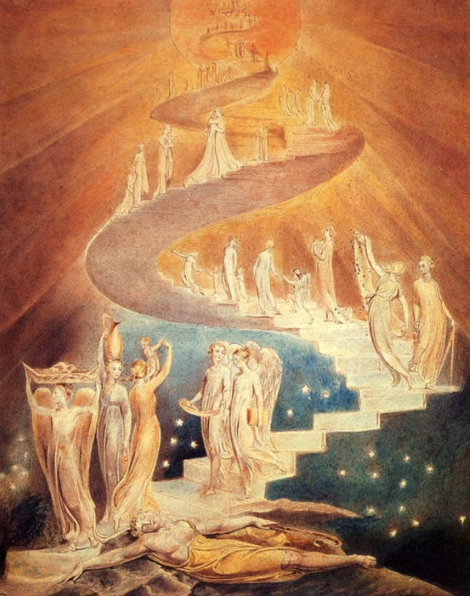 While their acculturation of Klüverian form-constants differ, Blake and /Xam hunter-gatherer bushmen shared a common neurology which, in the case of the /Xam, includes the incorporation of form-constants into painting. Blake’s incorporation of form-constant imagery from his own visual hallucinations occurs as early as An Allegory of the Bible (c.1780-85, Tate Britain) but is most easily recognized in Jacob’s Dream (c.1805, British Museum).