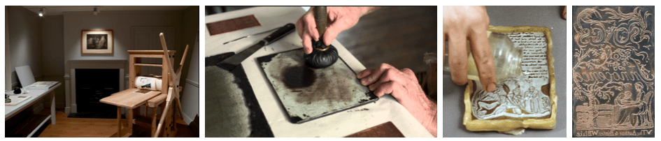 When it came to producing the ‘William’ and ‘Robert’ plates, Blake probably used yet another mirroring method. If we suppose he produced the ‘William’ plate first, creating a mirror written ‘William’ would be a conventional requirement for printing from a surface but he would also have had to write a mirrored ‘Robert’ when he produced the other plate. Assuming he worked economically, as Viscomi argues he usually did, Blake would probably have created the second plate by making a paper counterproof transfer from the first plate. At this point, assuming he used a method of ‘pouncing’ holes into the paper, he would have then needed to decide their orientation. As the finished design shows, he selected a mirrored transfer by turning over the pounced paper so that, when finished, it printed in reverse orientation.