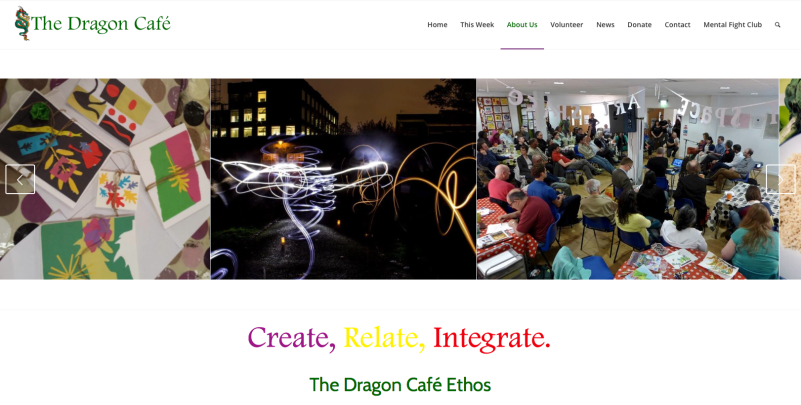 “It is a spiritual place that exists in London surrounded by the miseries of Babylon”. One of the most remarkable instantiations of Golgonooza is The Dragon Cafe, set up by the wonderful, and Blakean, Sarah Wheeler in Southwark. As its website notes, “The Dragon Café is the flagship project of Mental Fight Club. As such, it aims to be an open, welcoming group which puts on exciting, well-organised and inspirational creative events and programmes as well as simply being a place to be. It is a highly effective antidote to the loneliness and isolation which is so often prevalent in those who have been affected by mental illness.”