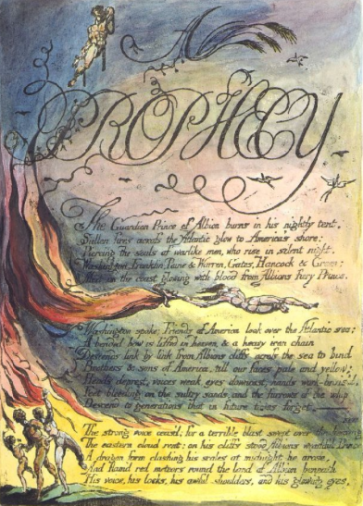 Both can use figures from Bunyan similarly, as when Paine writes that the “compounded image” of the downfall(s) of the Bastille and Despotism become “as figuratively united as Bunyan’s Doubting Castle and Giant Despair”. Blake and Paine share with other radicals of the 1790s the association of revolution with fire, but a sentence from part 2 of The Rights of Man comes particularly close to Blake’s statement that “France reciev’d the Demons light” from America. “From a small spark kindled in America,” wrote Paine, “a flame has arisen, not to be extinguished. Without consuming, like the ultima Ratio Regum, it winds its progress from nation to nation and conquers by a silent operation”.