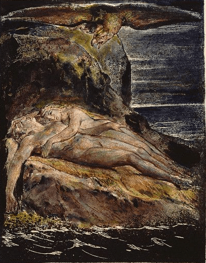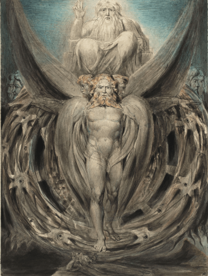 He sacrifices his body on the altar of “Law” and “demonstration” based on doubt in the connection of humans with each other and with the world. Blake survives his own self-judgment, exorcising the spectres of sorrow and self-doubt, by entering Ezekiel’s vision and creating with it his prophecy, which in turn invites his readers to enter into its “Visionary forms dramatic.”