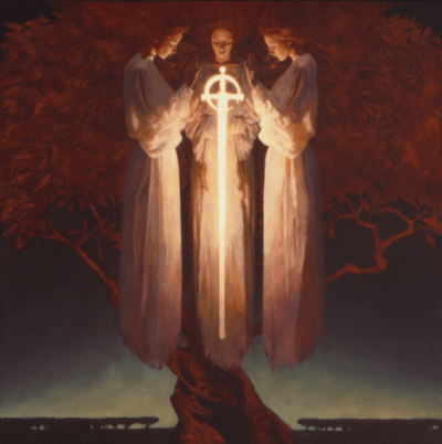 We are invited to view Blake’s prophecy, then, as an attempt to turn the fire-sword into a love-sword, just as in the first chapter of the poem Los (Blake himself) attempts to turn Hand’s (Los’s Spectre) fiery sword into a “Spiritual Sword”. In the prose introduction to Chapter 3, Blake calls this the war between the “Natural Sword” and the “Spiritual” sword, which he makes clear is between experiment based on doubt and revelation based on faith, self-righteousness and love, tyranny and liberty, as well as the classical warrior ideal and the command of the prophet Jesus to “Conquer by Forgiveness.” In short, by separating the true from the false Cherub, changing the guard to a guide, Blake attempts in his prophecy to usher us into Eden and its Tree of Life, that personal and political liberty grounded in the freedom of the human imagination.