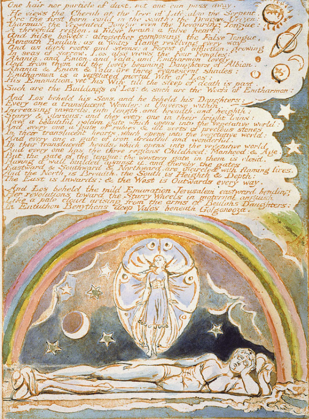 “Albion’s landscape and vision are unified; its emblem is his embrace of Jerusalem, together forming a flame-engulfed bow on Plate 99.”