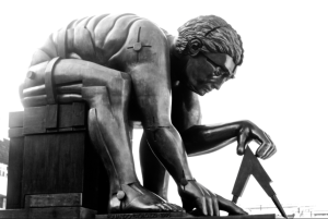 “Thou has ordered all things in measure, and number, and weight”. Pic: Eduardo Paolozzi’s bronze statue of Newton, outside the British Library in London. Note how this apparent epitome of learning and intellect is actually a figure of confinement, oppression, and estrangement from the world around it – an appropriately ambiguous image perhaps for the Library.