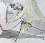 The pedestal and laurel crown identify the writer as a neo-classical writer, who Blake believed had a limited Imagination. He believed that classicism is the Daughter of Memory and Reason and so lacks Inspiration or Imagination – “We do not want either Greek or Roman Models if we are but just & true to our own Imaginations” – and the separation of Reason and Imagination is expressed in Jerusalem:
