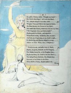 “Blake depicts personified Nature holding a pair of scales, presumably weighing faith against Reason, and representing the point of transition at which the poet’s ‘heart became the convert of my head’.”