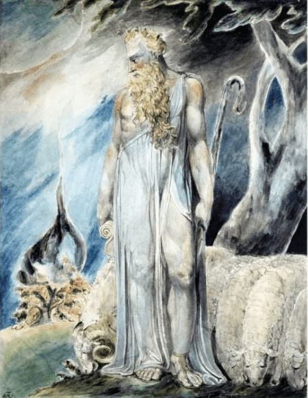 Moses and the Burning Bush (c. 1800-3). After receiving the ten commandments from God atop Mount Sinai, Moses returned to the Israelites with ‘qāran’ or, when rendered into English, ‘horns’ (‘And behold his face had horns’ — Exodus 34:29).