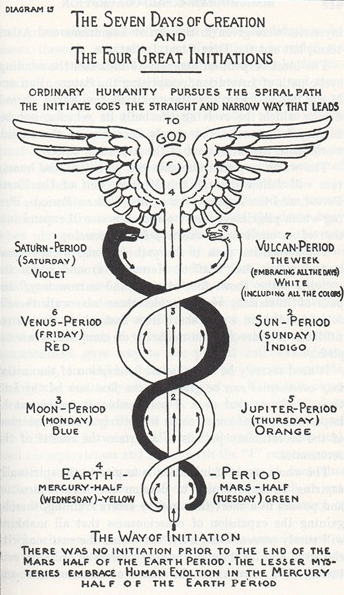 Hermes was not the inventor, or even the discoverer, for, as said in the footnote, Thoth-Hermes is a generic name, as is Enoch (Enoichion, the “inner, spiritual eye”), Nebo, the prophet and seer, etc. It is not the proper name of any one living man, but a generic title of many adepts. Their connection in symbolic allegories with the serpent is due to their enlightenment by the solar and planetary gods during the earliest intellectual Race, the Third. They are all the representative patrons of the Secret Wisdom. Asclepios is the son of the Sun-god Apollo — and he is Mercury; Nebo is the son of Bel-Merodach; Vaivasvata Manu, the great Rishi, is the son of Vivisvat — the Sun or Surya, etc. Let the reader be reminded, in this connection, of the fact that Apollonius met in Kashmir Buddhist Nagas — which are neither serpents zoologically, nor yet the Nagas ethnologically, but “wise men.”