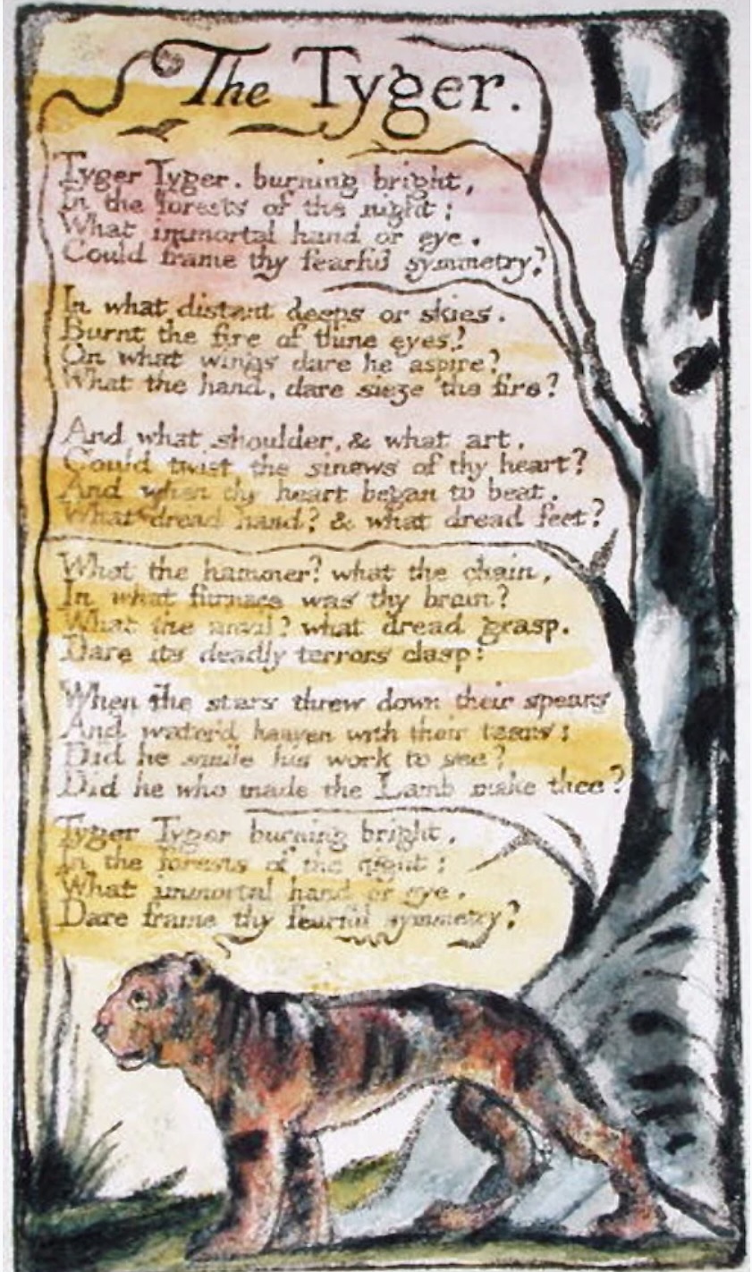 My mind and my body reacted to certain lines from the Songs of Innocence and of Experience, from The Marriage of Heaven and Hell, from ‘Auguries of Innocence’, from Europe, from America with the joyful immediacy of a flame leaping to meet a gas jet. What these things meant I didn’t quite know then, and I’m not sure I fully know now. There was no sober period of reflection, consideration, comparison, analysis: I didn’t have to work anything out. I knew they were true in the way I knew that I was alive. I had stumbled into a country in which I was not a stranger, whose language I spoke by instinct, whose habits and customs fitted me like my own skin.