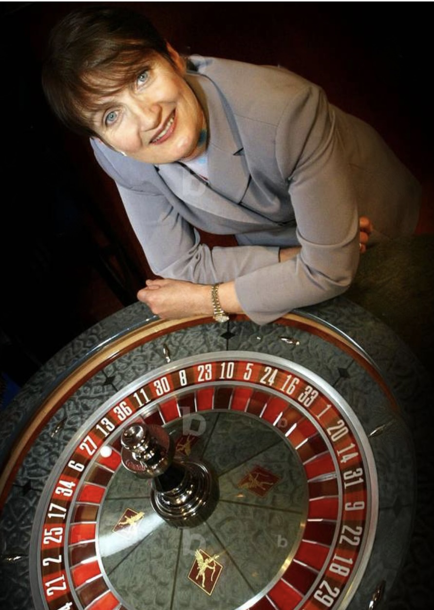 ”The Whore & Gambler by the State Licencd, build that Nations Fate’. Image: Britain’s Culture, Media and Sports Secretary Tessa Jowell poses for the press at the Gala Casino in London March 26, 2002. The British government removed the 1960s laws restricting gambling, allowing online gambling for the first time and casinos the right to offer any form of legal gambling.