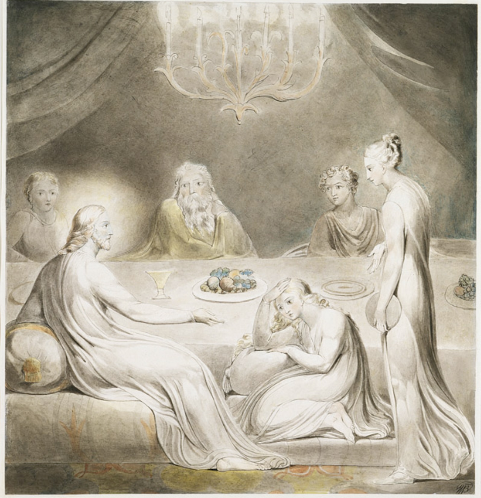 “Mescaline opens up the way of Mary, but shuts the door on Martha”. Image: ‘Christ in the House of Martha and Mary: “But Martha Was Cumbered About Much Serving”‘, by Blake. This again suggests the twofold or dual aspects that are going on within perception all the time.