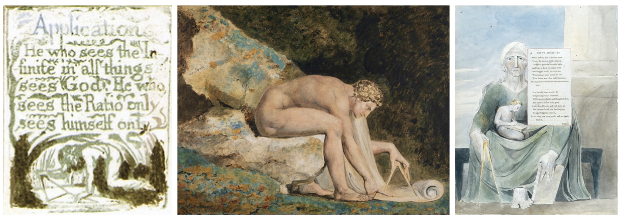 As previously noted, seeing the ratio will lead only to seeing the self, and a solipsistic perspective misses the infinite grandeur of creation. Likewise, Blake felt that Newton’s notion of explaining the world through mathematical theory was narrow, and the minute scope of Newton’s focus is intended to look pitiful.